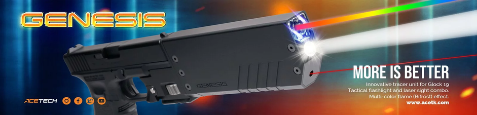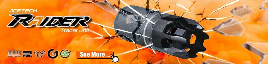 Acetech new BIFROST tracer is a compact tracer unit that supports green and gell BB's. Designed for any muzzle thread 144 CCW and 11mm CW ( comes with M14- to M11+ adapror )
